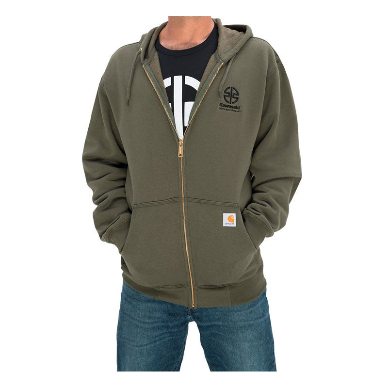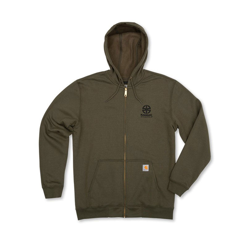10.5-ounce, 50/50 cotton/poly blend Kawasaki River Mark Logo Carhartt ® Midweight Hooded Zip-Front Sweatshirt