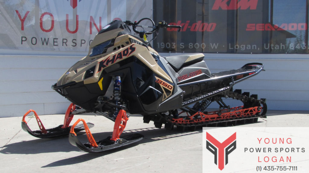 Polaris® 850 RMK Khaos Slash 155 Gloss Black/Military Tan/Orange Burst