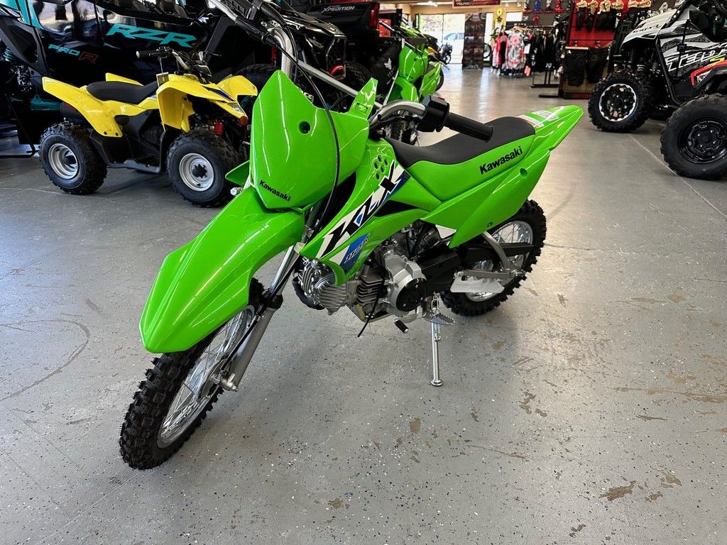 TAKE THE MINI-MOTO MISCHIEF OFF THE ROADWhether it's a friendly bike for beginners or the ultimate pitbike for more experienced riders, the KLX®110R and the slightly larger KLX®110R L off-road motorcycles are up for the task. The playful 112cc engine and compact chassis are versatile enough to handle fun for any young rider.