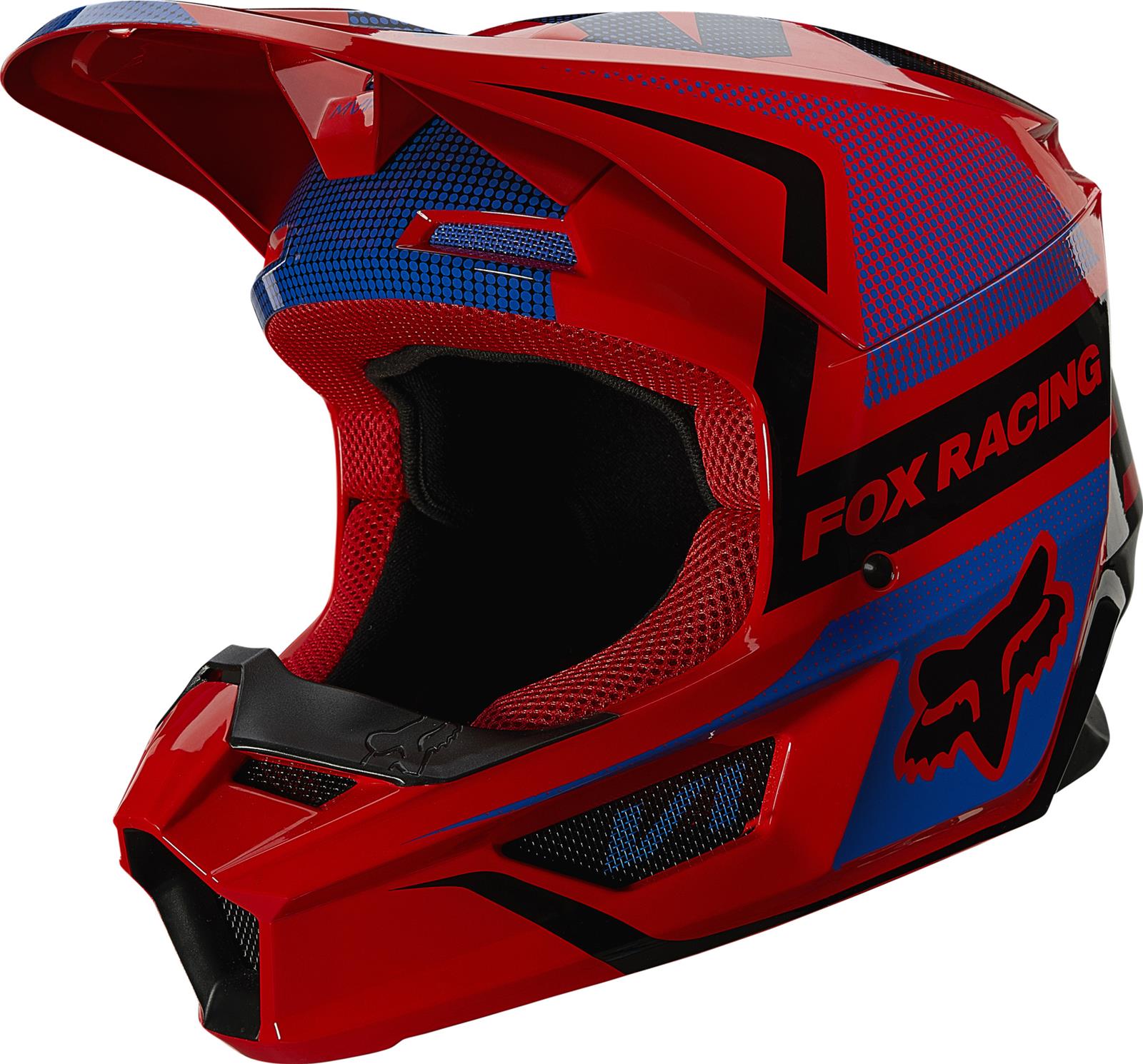 The V1 Helmet combines cutting-edge safety features with bold, eye-catching design. Engineered with a lightweight, durable shell, it offers superior impact protection while maintaining comfort. The strategically placed ventilation system ensures optimal airflow for a cool, focused ride. Finished with striking red and blue graphics, this helmet is perfect for riders who demand both performance and style.