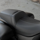 This Extended Reach Syndicate Seat provides customized ergonomics for taller riders and riders who like their legs fully stretched out to the foot pegs and lower controls. The motorcycle seat’s specially shaped cushioning positions the rider higher and 2 in. farther back than the standard seat. This gives the rider’s legs an extended reach from the seat to the foot pegs and controls, adding comfort for riders who are taller or have longer legs. It also integrates the rider and passenger seats into a stylish, single seat that gives the bike a custom look.