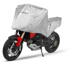 The Select WP Motorcycle Half-Cover is a must-have for any rider aiming to shield their bike from weather damage. Crafted to be both waterproof and durable, it offers strong protection against rain, dust, and grime. Its compact size ensures it’s easy to carry and quick to set up, keeping your motorcycle clean and dry. The half-cover design fits tightly over the upper part of your bike, protecting essential areas while being easy to manage due to its lightweight nature. Ideal for outdoor parking or simply maintaining your bike's condition, the Select WP Half-Cover is a practical and effective solution for preserving the look and longevity of your motorcycle.