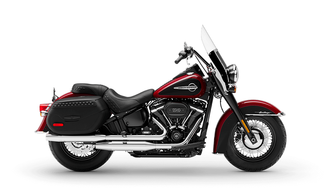 The refined gloss-black finishes, modern edge and reinvigorated ride of the Heritage model take nostalgia ripping into a new place. It starts with the performance of the Milwaukee-Eight 107 or 114 engine and the re-invented Softail frame and suspension. The ride will put a big smile on your face. On top of that, you get a look that drips with gangster-era style. And practical features like a windshield and hard saddlebags for light touring. Tradition is good, but it doesn’t mean sitting still. Available in 107 (1745cc) and 114 (1868cc) engine displacements.