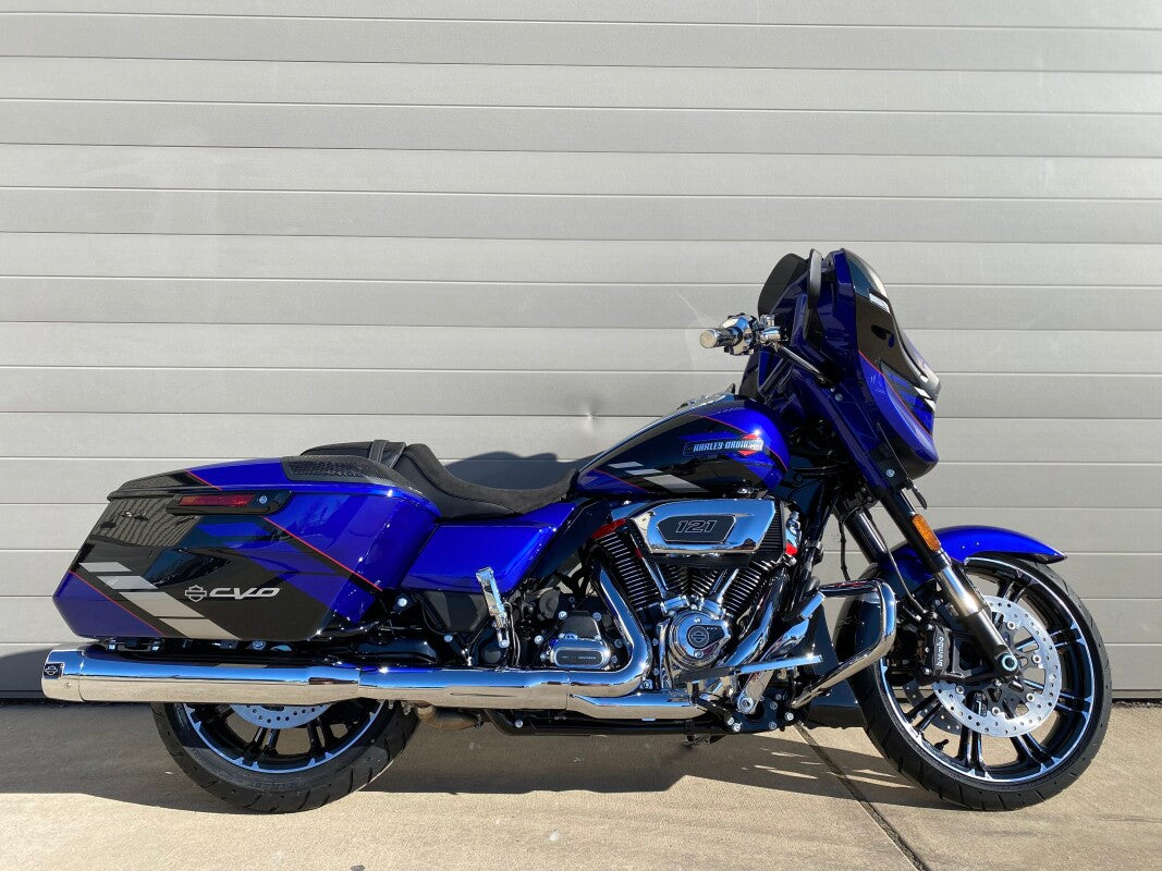Equipped with the best of everything straight from the factory, the CVO Street Glide is a Batwing bagger loaded with the latest tech and premium custom detailing—like the VVT 121 engine, high-performance audio, exclusive paint, and contrast-cut wheels—setting the stage for unmatched performance and style.